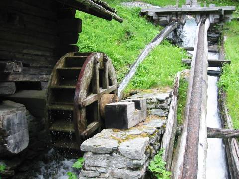 Les moulins que l’on peut voir dans le Val d’Anniviers, et qui ont été restaurés il y a une vingtaine d’années à des fins de remise en valeur du patrimoine, recourent à une technologie plus ancienne et plus rudimentaire, mais véritablement « appropriée » aux moyens et connaissances de leurs utilisateurs d’antan.