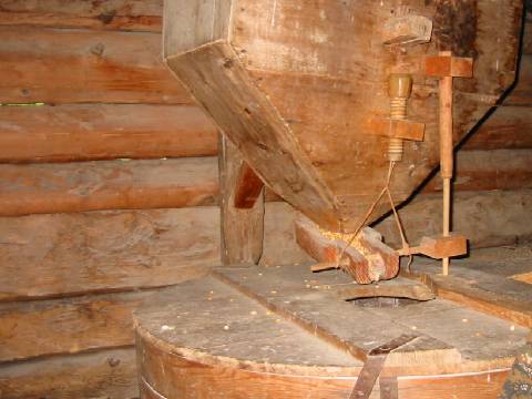 Pour certains usages (pour broyer les noix par exemple), les meuniers recouraient à un autre type de meules : la tournante, de forme conique, était placée verticalement sur une dormante taillée en forme d’auge.