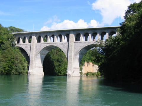 Du Léman à la frontière franco-suisse et sur les 27 km de son cours en terres genevoises, le Rhône est jalonné d’une vingtaine d’ouvrages qui permettent de le traverser. Petit inventaire : 2. De la Jonction à Chancy