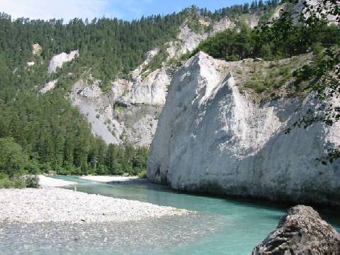 Il aura cependant fallu plusieurs millénaires avant que les bords de ses gorges ne se couvrent de végétation et de forêts dont la verdure contraste étonnamment avec la blancheur et la brillance des parois calcaires qui surplombent tout le site. Les anciennes glaciations ont elles aussi laissé quelques traces sous forme de moraines notamment. Et les divagations du fleuve ont peu à peu créé ici et là quelques larges péninsules de prairie. (bw)